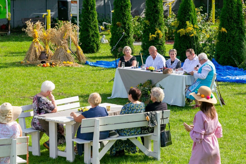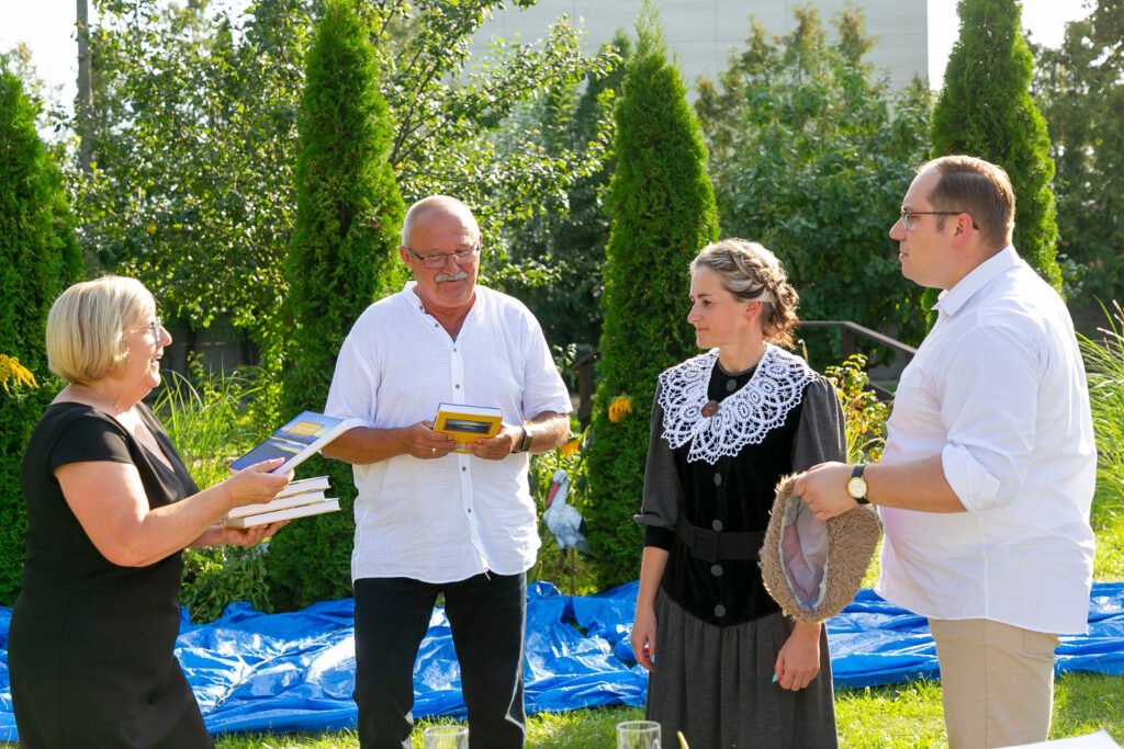 Wszystko to co wydarzyło się wczoraj jest już historią! Powspominajmy więc i my. 9 września br. przy iście letniej pogodzie w pięknej scenerii, o godzinie 15.00 rozpoczęło się Narodowe Czytanie „Nad Niemnem” Elizy Orzeszkowej, zorganizowane przez Gminna Biblioteka Publiczna Rakoniewice. Zebrani uczestnicy mogli posłuchać fragmentów powieści czytanych przez lektorów: Janusza Pietrzaka, Janinę Wurst, Huberta Kolera, Katarzynę Krysmann i Dorotę Lipowicz. Za ich sprawą, oczami wyobraźni przenieśliśmy się do nadniemeńskiej krainy, stąpaliśmy po ukwieconych łąkach zajrzeliśmy do korczyńskiego dworu posłuchaliśmy legendy o Janie i Cecylii, protoplastach rodu Bohatyrowiczów. Dane nam było również, pochylić głowę nad powstańczą mogiłą, pamiętnego zrywu niepodległościowego z 1863 r., oraz poczuć trud żniwnych prac. Gdzieś w tle słychać było szum płynącego Niemna, który w powieści stworzył intymny i romantyczny krajobraz, do rozmyślań i przeżyć wewnętrznych bohaterów literackich. Wydarzeniu towarzyszyła wystawa pt. „Pani od Przyrody” – Etnobotaniczne pasje Elizy Orzeszkowej. Po części oficjalnej wśród uczestników rozlosowaliśmy 5 egzemplarzy „Nad Niemnem”, które szczęśliwcy oraz Ci, którzy przynieśli własne książki, opatrzyli pamiątkową pieczęcią nadesłaną z Kancelarii Prezydenta RP. Następnie w miłej atmosferze, przy kawie i drożdżowym cieście toczyły się towarzyskie rozmowy. Dziękujemy jeszcze raz wszystkim, że zechcieli wziąć udział, w tak ważnym literackim wydarzeniu i ten wspólnie spędzony czas.