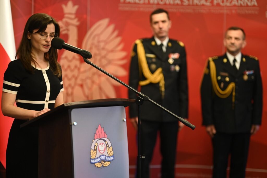 St. bryg. Jacek Strużyński podczas uroczystości, w obecności wojewody wielkopolskiej Pani Agaty Sobczyk oraz zaproszonych gości, złożył komendantowi głównemu PSP nadbryg. dr. inż. Mariuszowi Feltynowskiemu meldunek o przyjęciu obowiązków wielkopolskiego komendanta wojewódzkiego PSP.