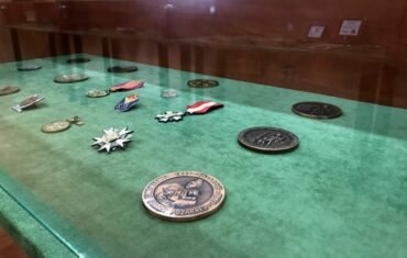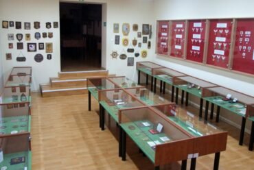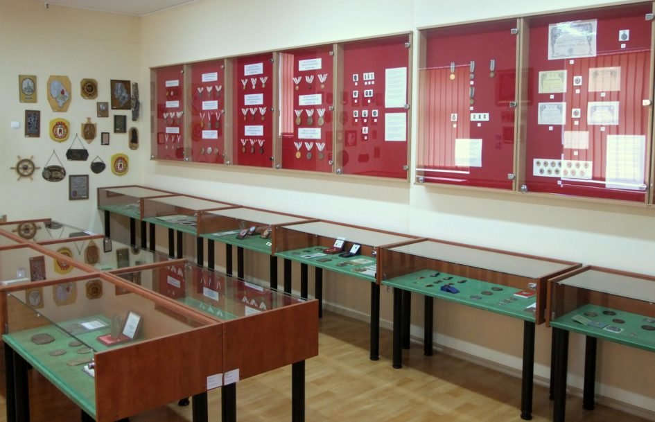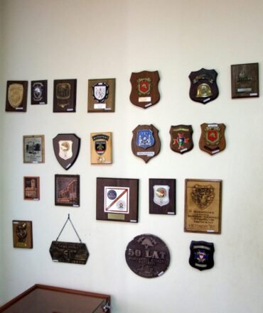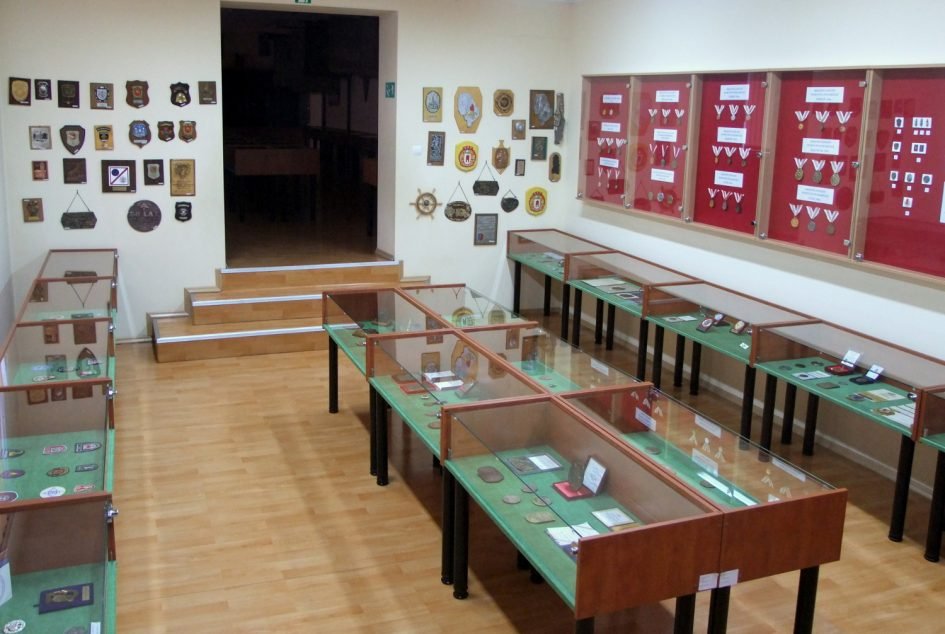 Sala medalierska prezentuje kilkaset państwowych i korporacyjnych odznak, odznaczeń, medali, plakiet oraz naszywek pożarniczych. Nadawanych za zasługi, wieloletnie zaangażowanie, edukację pożarniczą, czy osiągnięcia sportowe funkcjonariuszy i ochotników zarówno w Polsce jak i za granicą.